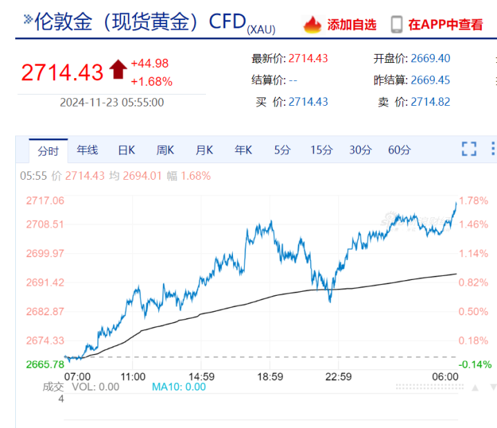 现货黄金报2700好意思元/盎司,日内涨逾1%。东方金诚征询发展部副总监瞿瑞暗示,金价飞腾源于地缘政事突破进一步加重。短期内地缘突破濒临升级风险,市集避险需求随之飙升,进而带动金价飞腾。