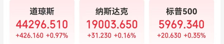 当地时辰11月22日,好意思股三大指数集体收涨,谈指涨0.97%,再创历史收盘新高,本周累涨1.96%;标普500指数涨0.35%,本周累涨1.68%;纳指涨0.16%,本周累涨1.73%。